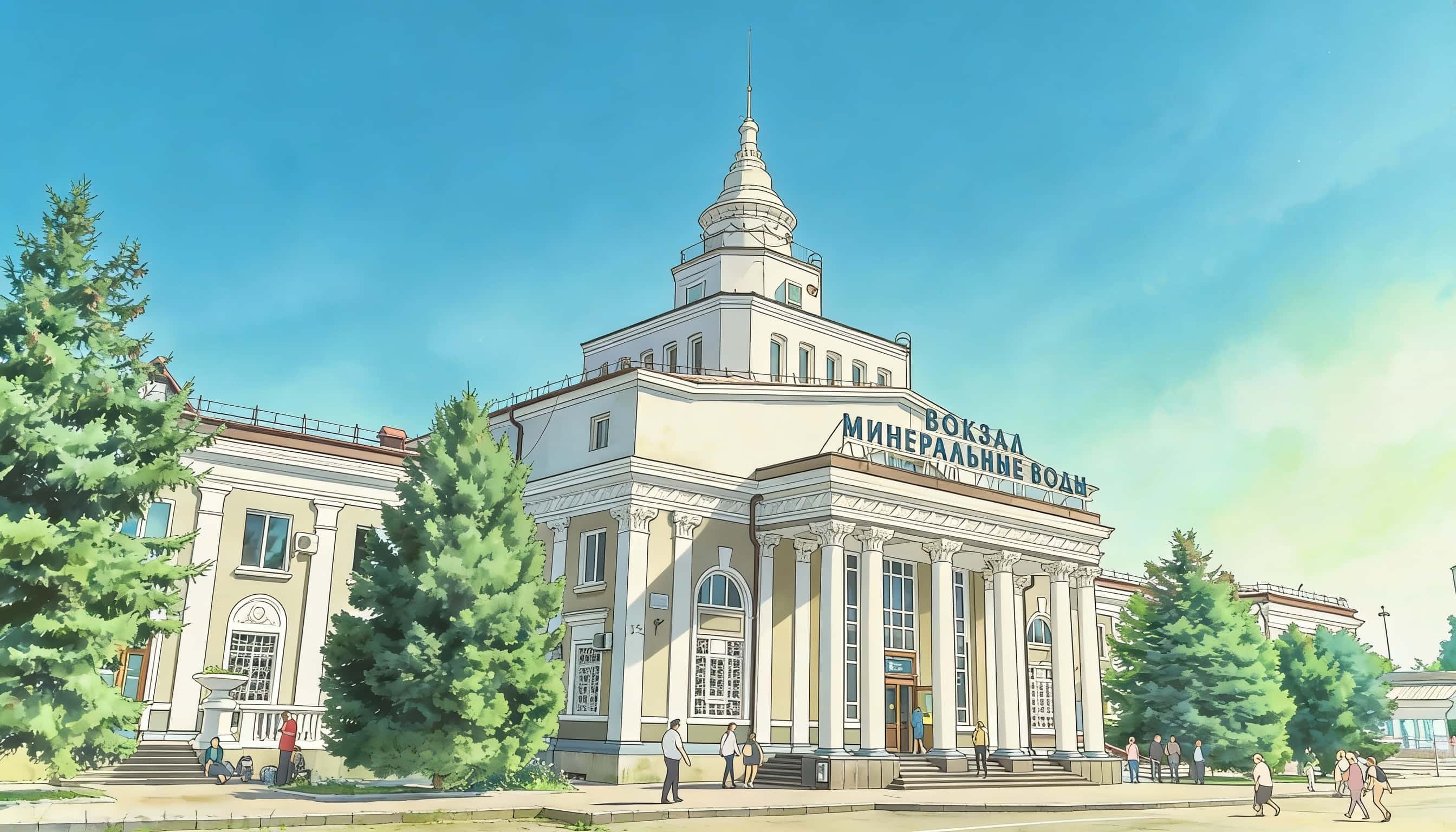 Железнодорожный вокзал — одна из главных достопримечательностей Минеральных Вод и логичная точка старта маршрута. Современное здание вокзала было построено в 1955 году и считается самым выразительным архитектурным объектом города.